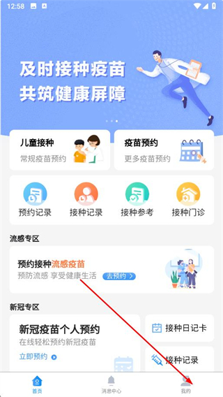 1、打开首都疫苗服务app,点击底部导航栏中的我的选项。