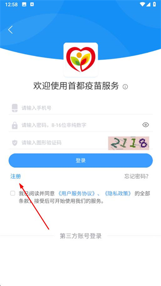 4、输入手机号、密码、图形验证码、验证码,勾选服务协议,点击立即注册。