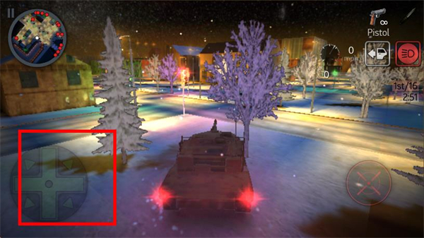 4、进入射击场景通过屏幕虚拟摇杆控制瞄准方向,对目标进行射击完成任务。