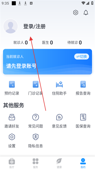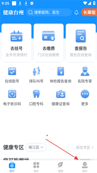 1、打开健康台州APP,在首页点击去挂号,进入预约挂号页面。