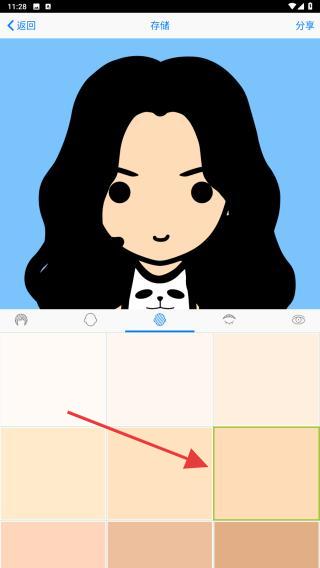 3、打造完发型后,再选择肤色,点击即可进行下一步。