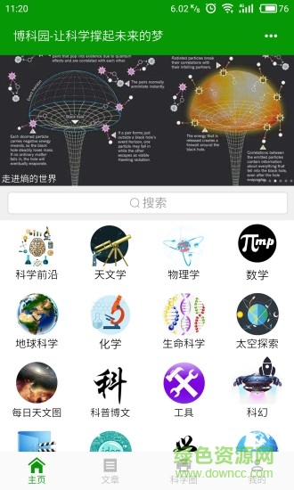 博科园app是一款上知天文下知地理的博学类应用,帮助你进一步认知这个世界,你想知道的宇宙奥秘、人文难题、航天困惑这里都有,快来绿色资源网加入我们的探索吧!