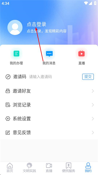 2、在个人中心页面,点击点击登录区域,可进入用户登录页面