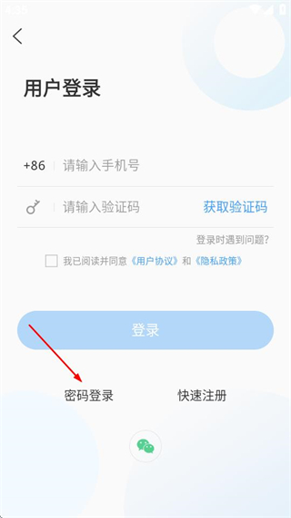 3、在用户登录页面,点击密码登录选项,可进入密码登录页面。