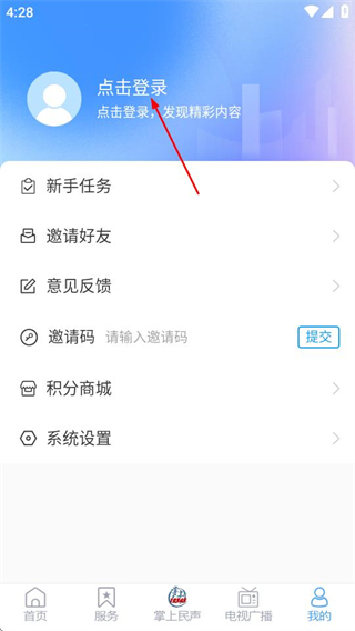 2、在个人中心页面,点击点击登录区域,可进入用户登录页面。