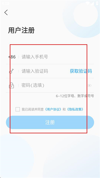 4、在注册页面,填写信息并勾选协议后,点击注册按钮即可完成账号注册。