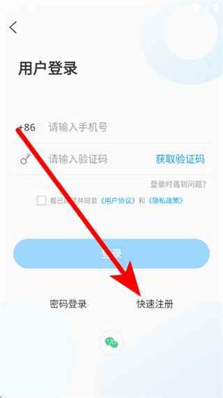3、在用户登录页面,点击快速注册,进入用户注册页面。