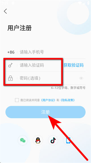 5、输入验证码和设置密码,勾选同意后,点击注册,完成注册。
