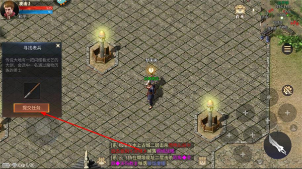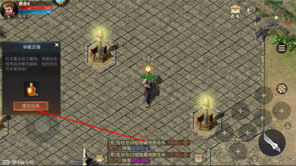 4、完成武器穿戴后,提交穿戴武器任务,推进游戏进程。
