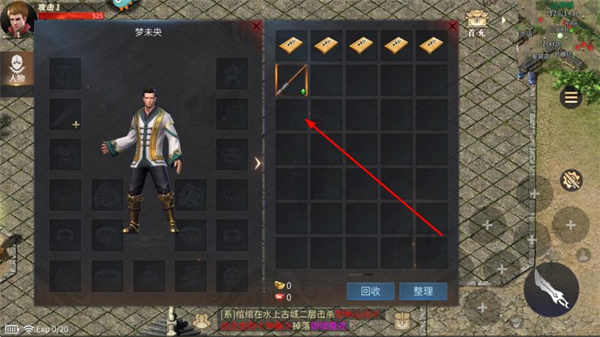 3、打开背包界面,找到获得的武器道具,准备进行穿戴。