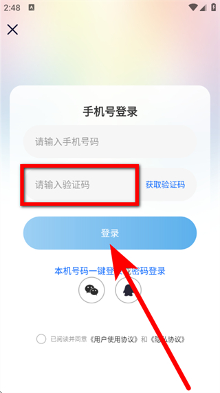 4、在请输入验证码栏,勾选同意相关协议后,点击登录,完成登录。