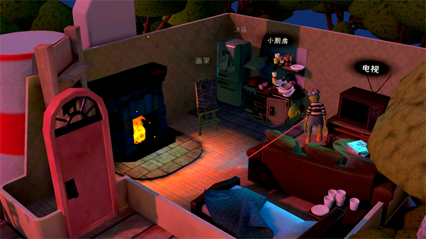 1、观察房间内的物品画架等,操控角色移动到画架位置,准备进行创作。