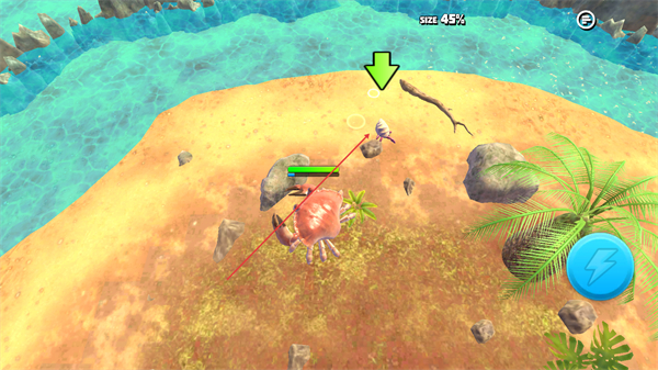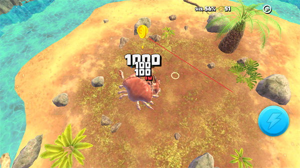 2、持续攻击小生物,积累数值,让螃蟹体型逐步变大,增强战斗力。