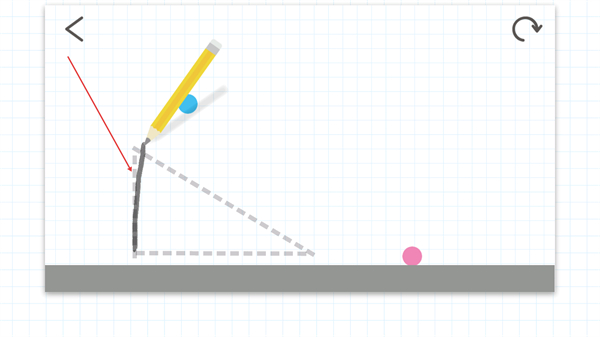 1、观察铅笔与粉色点的位置,按虚线提示规划轨迹,准备绘制路径引导蓝色球移动。
