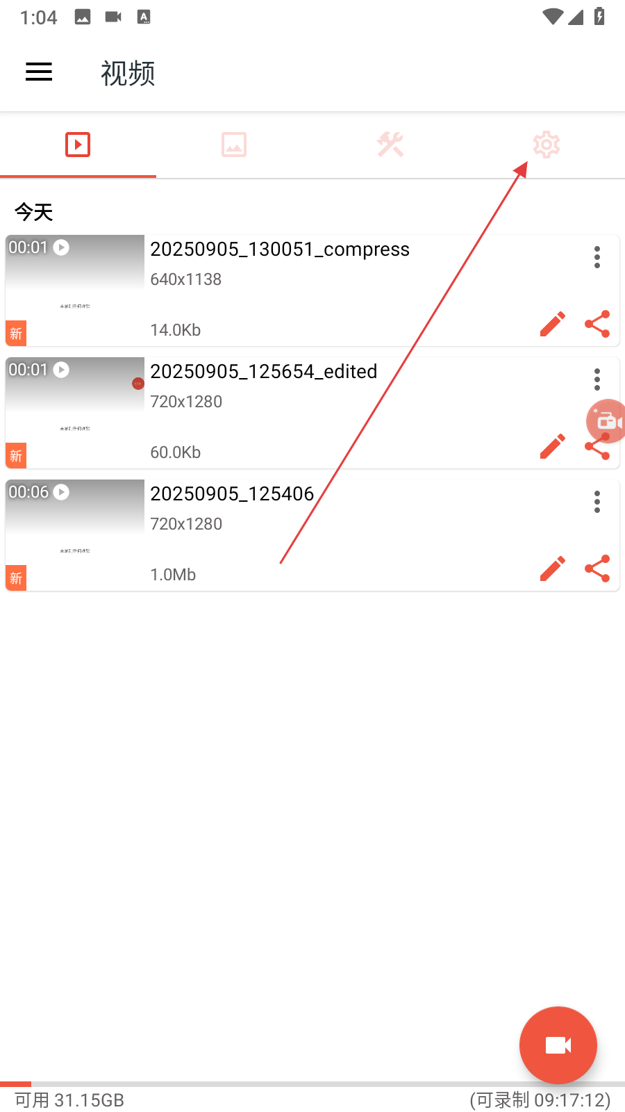 1、打开AZ Screen Recorder应用,点击界面右上角的设置图标,进入设置页面。