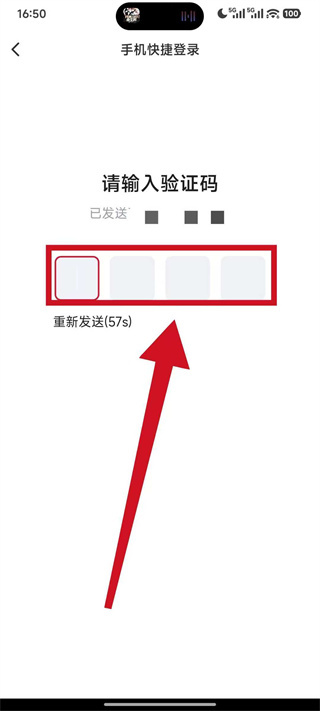 4、进入请输入验证码页面,将收到的短信验证码填入对应的输入框,即可完成账号登录。