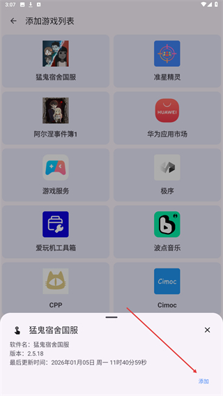 4、选中目标游戏后,点击界面底部的添加按钮,即可完成。