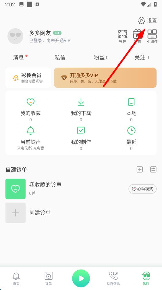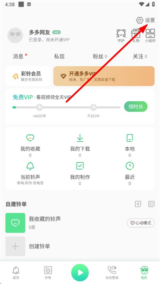 1、打开铃声多多应用,点击底部导航栏中的我的图标,进入个人相关页面。