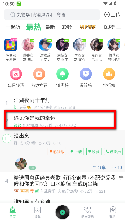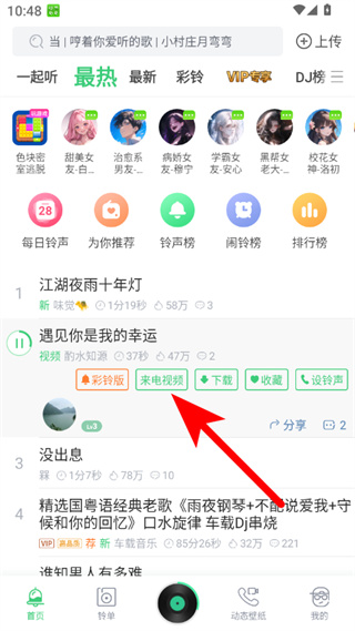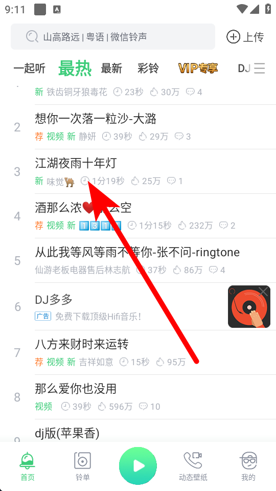 1、在铃声多多“最热”页面,找到想要下载的铃声,点击该铃声。