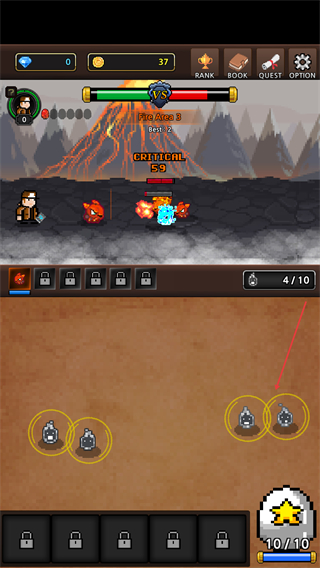 1、在Select-Partner界面挑选属性怪物,选定后即可进入与该怪物属性匹配的关卡,开启冒险。