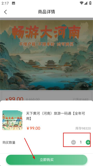 4、在购买页面选择数量后,点击立即购买按钮即可完成购买流程。