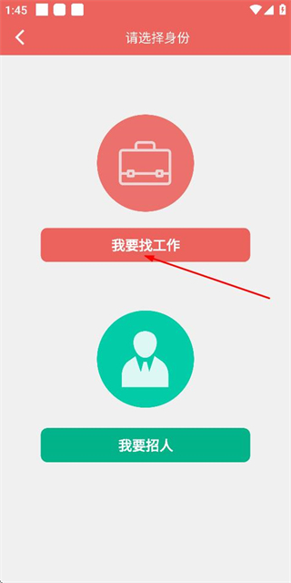 1、登录后在选择身份页面点击我要找工作选项,进入职位列表页面。