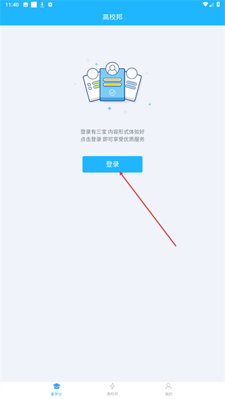 1、打开高校邦应用,在初始展示页面点击登录按钮进入登录界面。