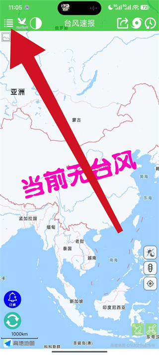 1、打开台风速报,点击页面左上角的更多功能,弹出更多功能菜单。