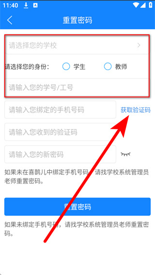 4、将收到的短信验证码填入验证码输入框,再设置新密码,即可完成密码重置。