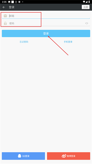 3、输入邮箱、密码后,点击登录的按钮即可完成。