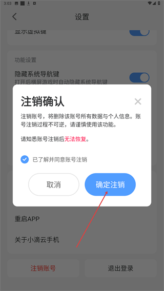 小滴云手机怎么注销账号