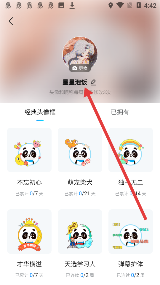 3、在头像与昵称设置界面,点击昵称旁的编辑符号输入要修改的新名字。