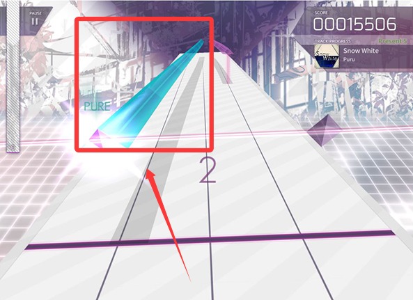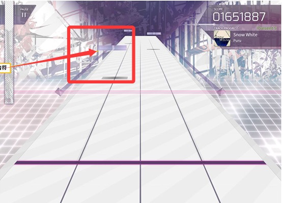 3、遇到立体长条形音符时,需要拖拉上方判定线的八面体跟随着音符的轨迹移动。