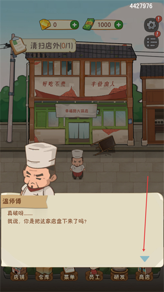 2、从初始破败的店外区域起步,逐步解锁大厅、厨房等区域,每解锁一个区域都能拓展经营功能,体验店铺从简陋到完善的完整成长过程。