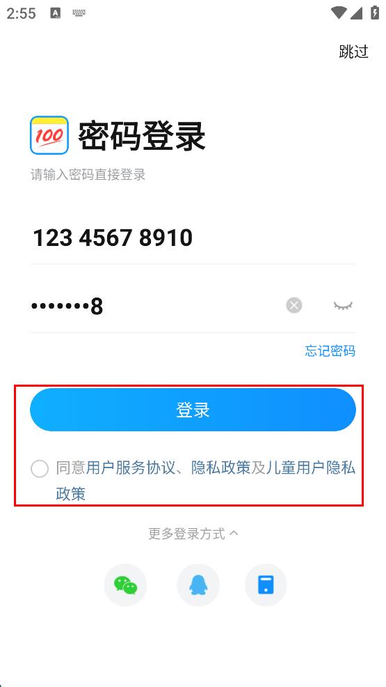 3、在密码登录界面输入手机号码和密码,确保输入准确。