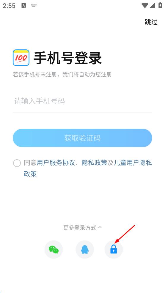 2、进入登录页面,点击密码登录选项,切换到密码登录界面。