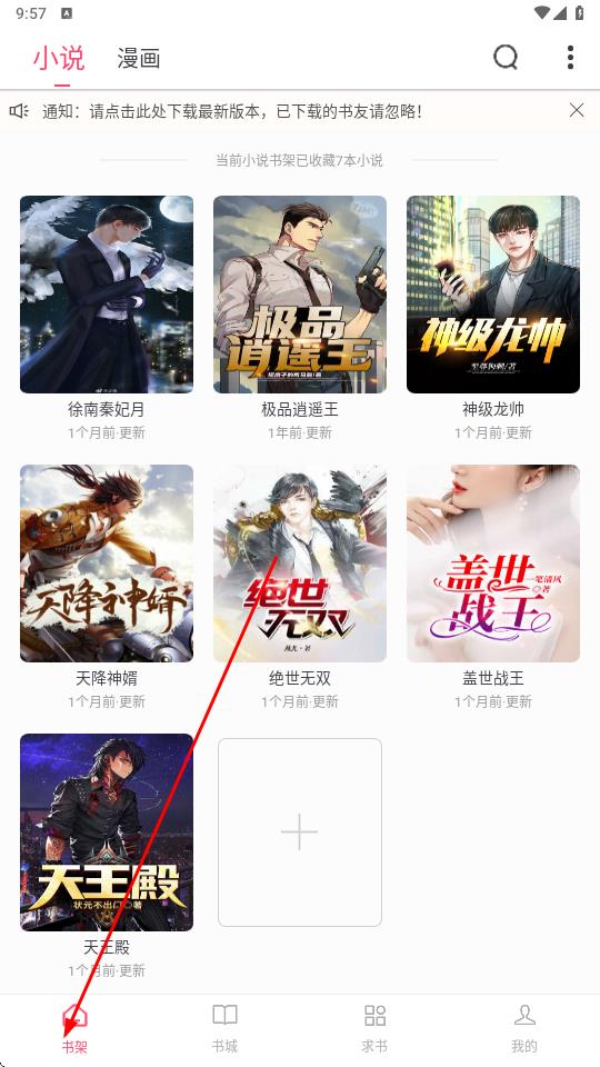 1、打开小小追书,点击底部书架,查看《徐南秦妃月》《极品逍遥王》等已收藏小说,了解更新时间。