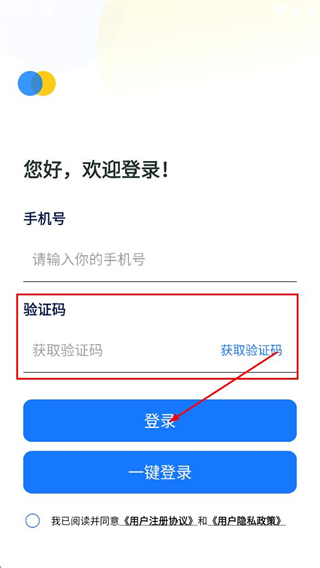 3、在登录页面点击获取验证码,填写验证码后,点击登录完成登录操作。