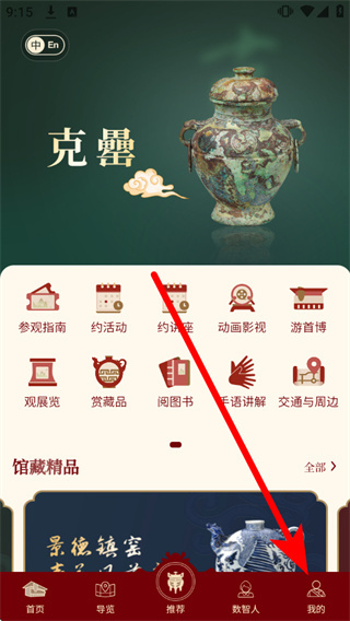 1、打开首都博物馆,进入首页后点击底部导航栏的我的,进入个人中心页面。