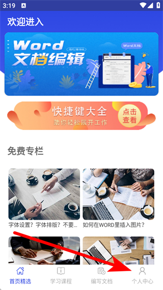 1、打开文库文档编辑APP,点击个人中心,进入个人中心页面。