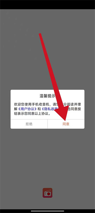 1、打开手机收音机,弹出弹窗后,点击同意,进入电台主页面。