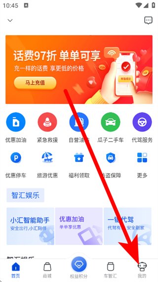 1、在车智汇首页,点击底部我的,进入个人页面。