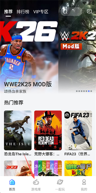 1、在游戏首页点击底部的游戏库选项,进入游戏库页面。