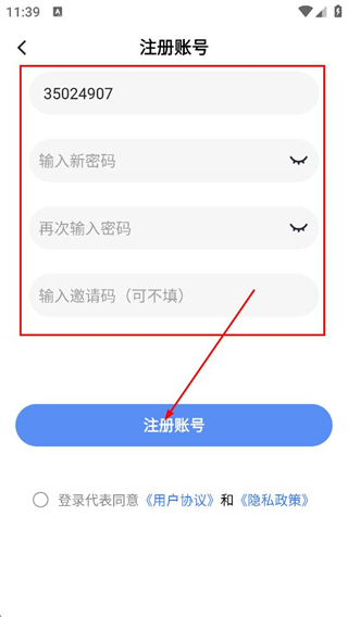 4、在注册账号页面填写对应信息,点击注册账号,完成注册操作。
