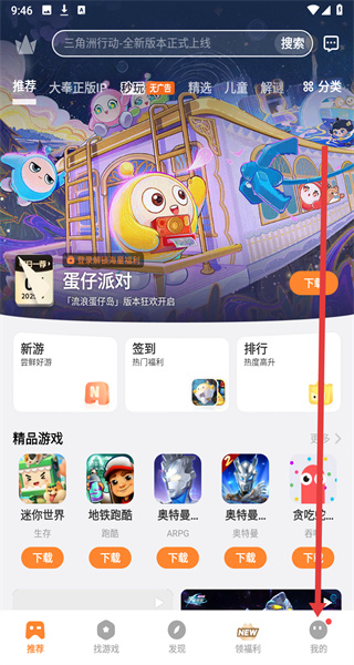1、在vivo游戏中心首页中,可以通过点击我的按钮,进入个人中心页面。