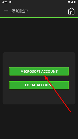 2、在账户选择界面中,点击MICROSOFT-ACCOUNT按钮,进入对应账户的注册或登录流程。