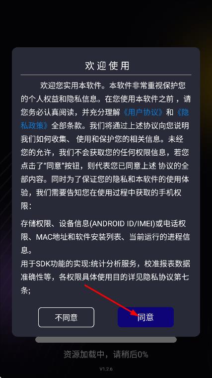 1、在软件的欢迎使用弹窗中,点击同意,进入应用主界面。