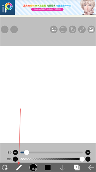在ibisPaint界面左侧工具栏,点击画笔图标,可调出画笔设置面板,调整笔刷参数或切换绘制工具,辅助创作。