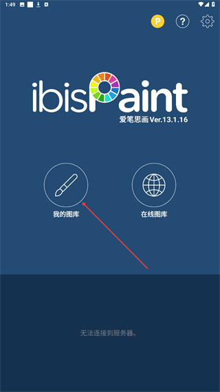 1、启动爱笔思画App,进入时点击我的图库的按钮。