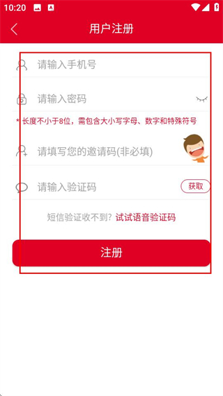 3、在登录页面,点击注册按钮,可进入用户注册页面。